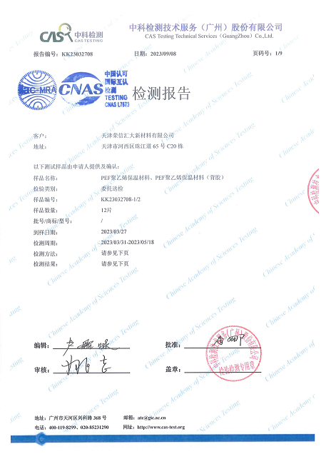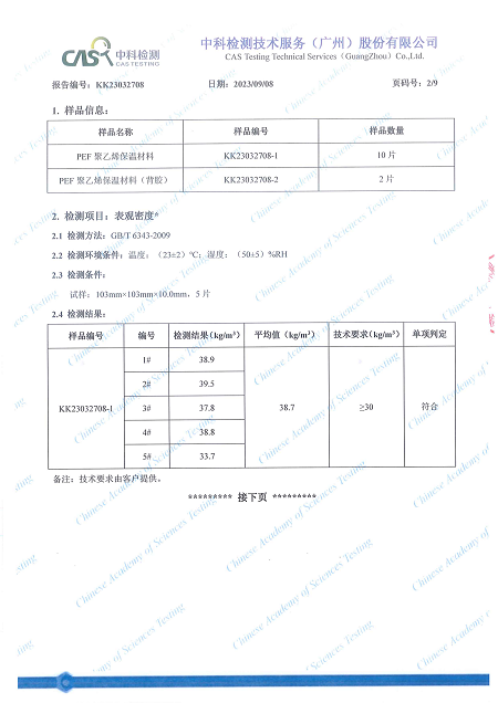 中科檢測技術(shù)服務(wù)(廣州)股份有限公司 PEF 聚乙烯保溫材料 檢測報(bào)告