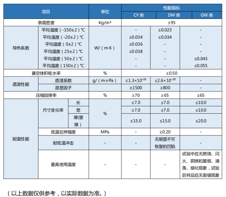 密度:40*80kg/m3;導(dǎo)熱系數(shù):0℃時(shí)≤0.03w/m.k ;使用溫度:-40℃至105℃